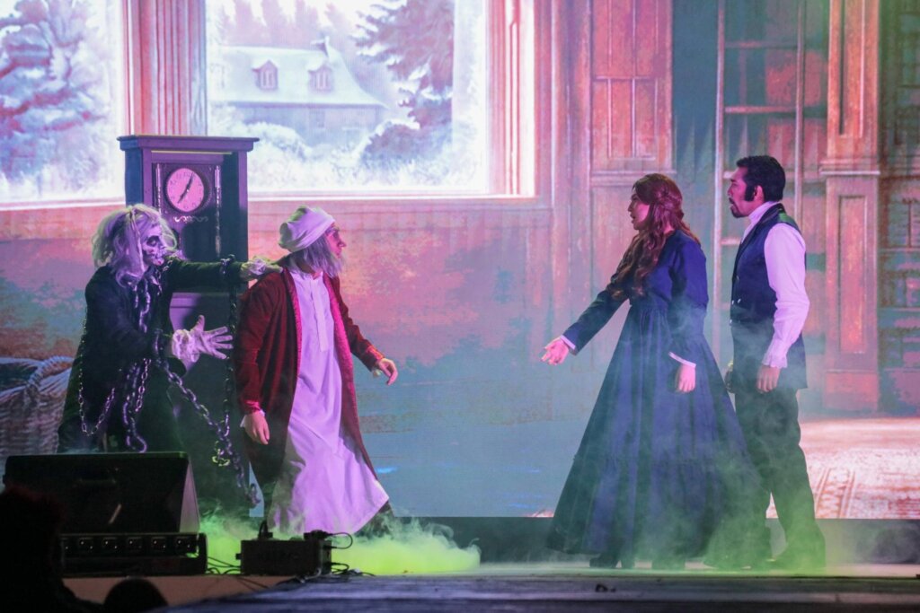 Inspirada en Un cuento de Navidad, la obra presentó la transformación de Scrooge como una invitación a reflexionar sobre el perdón, el cambio personal y el verdadero significado de la Navidad. A través de música en vivo, danza y un montaje dinámico, el musical logró mantener la atención del público en cada función, conectando con familias, jóvenes y adultos.
